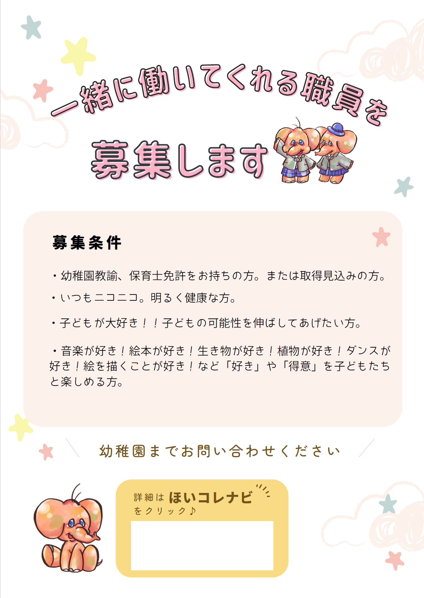 教育は愛情によってはじめられるもの。家庭こそが最大の教育の場であり、保護者の皆さまは最もふさわしい先生です。しかし、子どもたちが将来、社会で活躍するために、社会性を身につけることが重要です。教育や文化を受けとめるのに十分な素地を作るため、遊びや生活の中で“ていねいに ていねいに”経験を積んでいき、創造性、自発性、自分や他の人を大切にする“やさしさ”の基礎を身につけます。「今」そして「将来」子ども達が、そして私たち大人もニコニコと過ごすために何が必要なのか一緒に考えてまいりましょう。