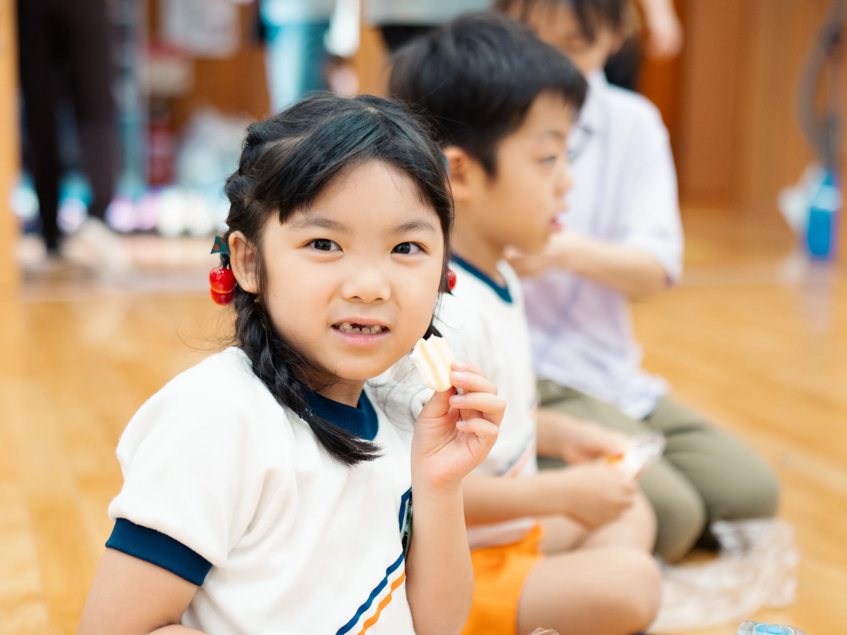 広々とした園庭には滑り台やブランコなどの遊具がそろい、子どもたちの笑顔があふれます。朝の体操や休み時間には元気いっぱいに体を動かし、運動会など季節の行事もここで行われます。